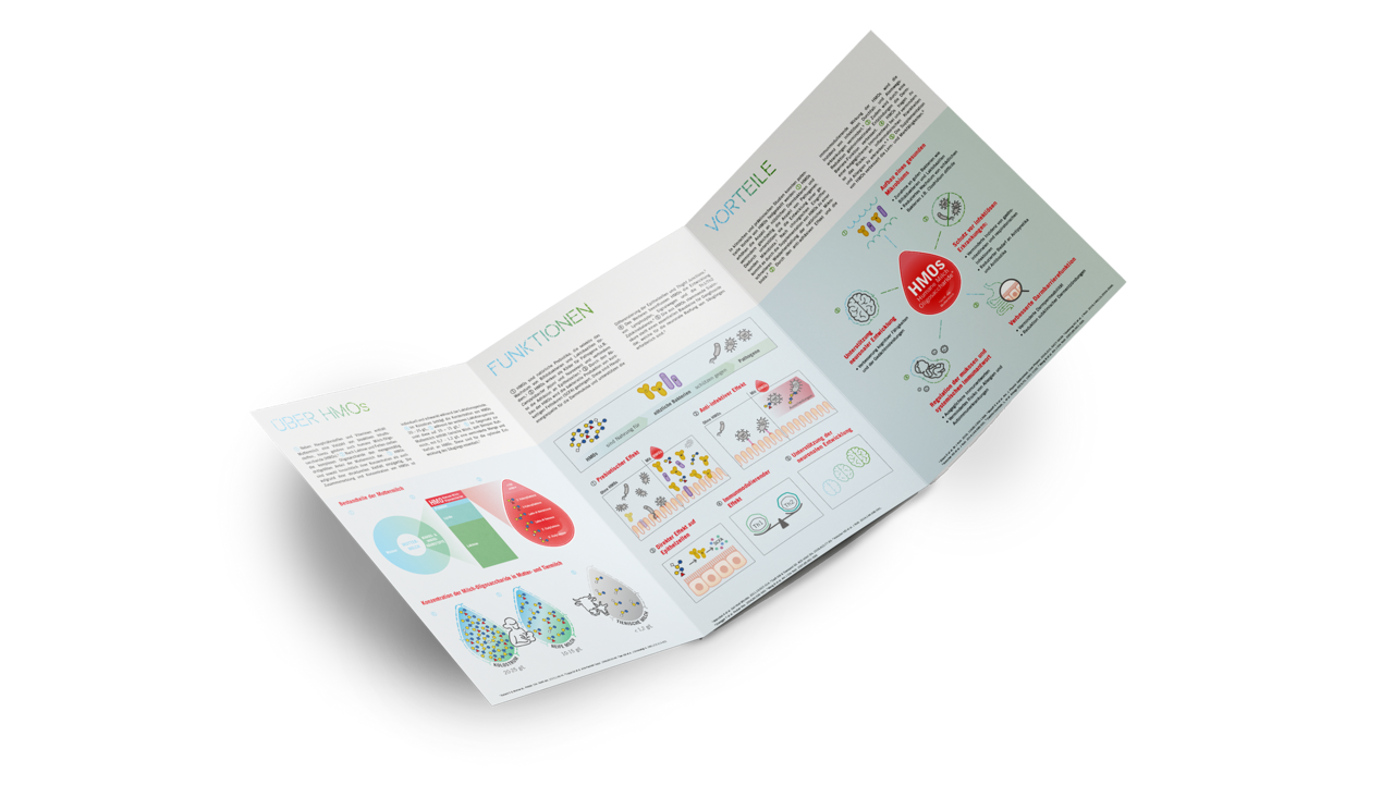 Die Produkte von Jennewein haben Erklärungsbedarf. Illustrationen und Schaubilder erklären fachfremden Zielgruppen, z.B. Hebammen, die Vorteile und Wirkungsweisen der HMOs auf anschauliche und spielerische Art und Weise.